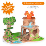 Une végétation luxuriante, un volcan en éruption, une caverne, une cascade, ce décor est le lieu idéal pour mettre en scène les nombreux dinosaures Papo !